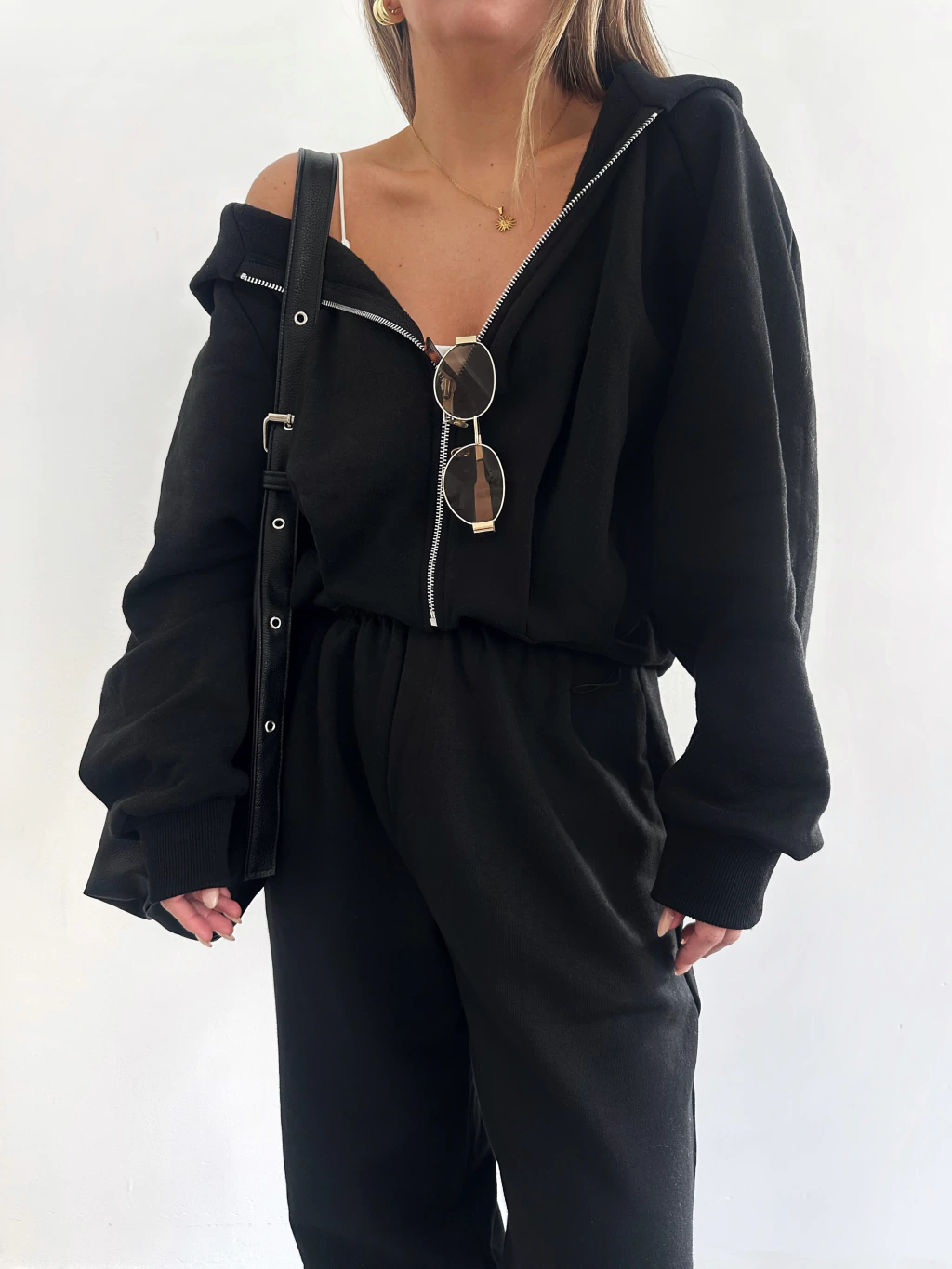 campera de algodón de frisa, tipo bomber con pinzas en la cintura, capucha amplia, cierre plateado y bolsillos ♥
