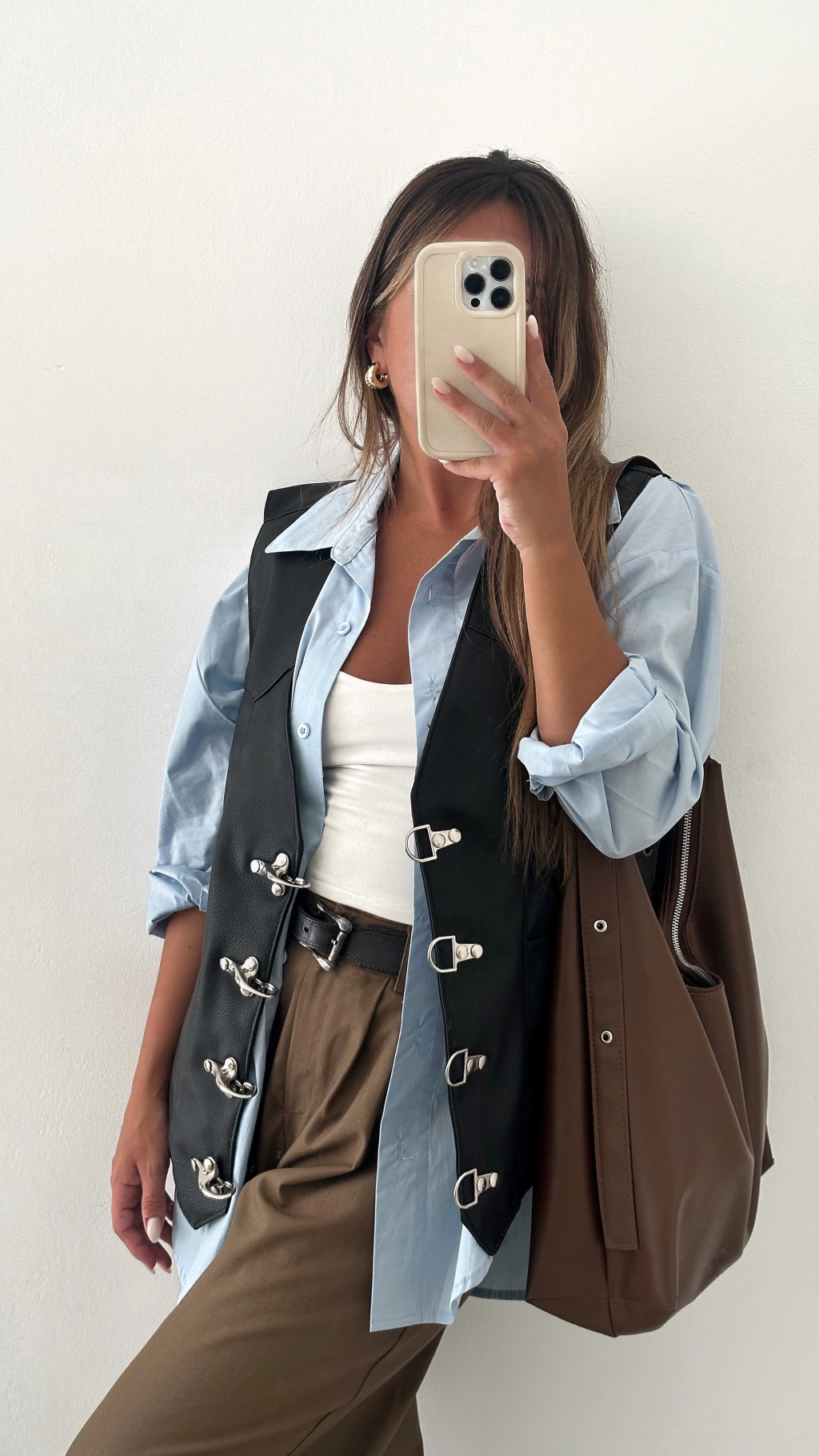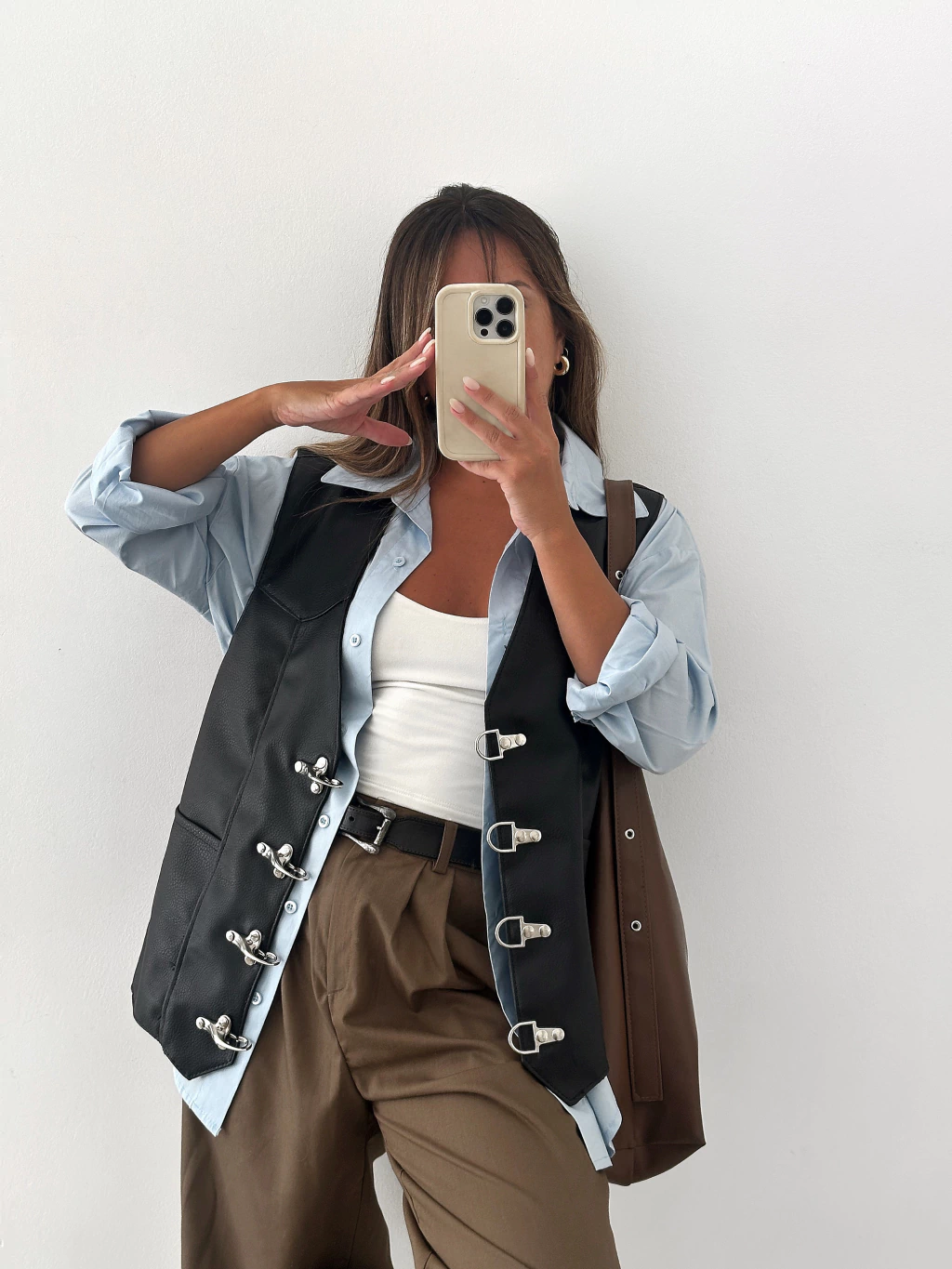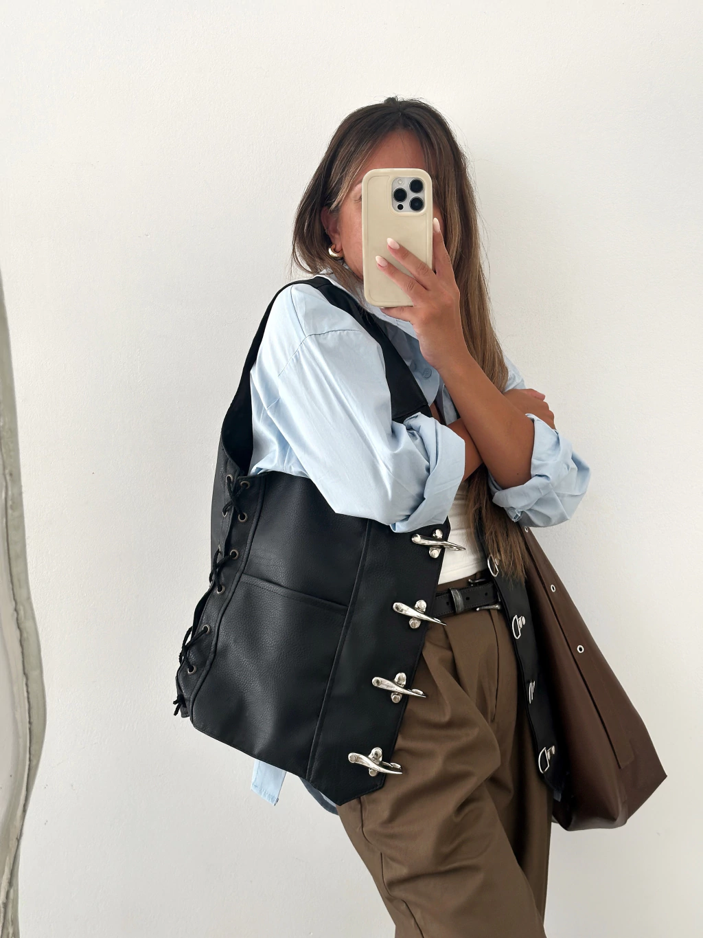 Chaleco de ecocuero, UNISEX, oversized, con herrajes color plateado y cordones laterales también con los ojales color plateado. Es un producto artesanal y exclusivo BÖHME <33