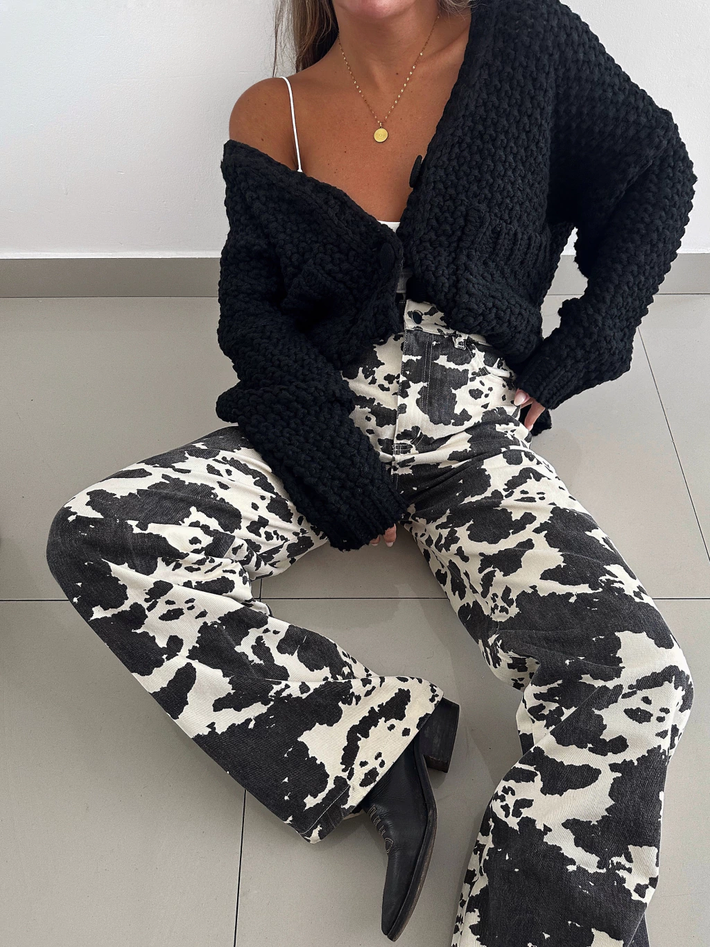 Jean tipo wide leg con estampado de vaca blanco & negro. HERMOSO CALCE ♥♥