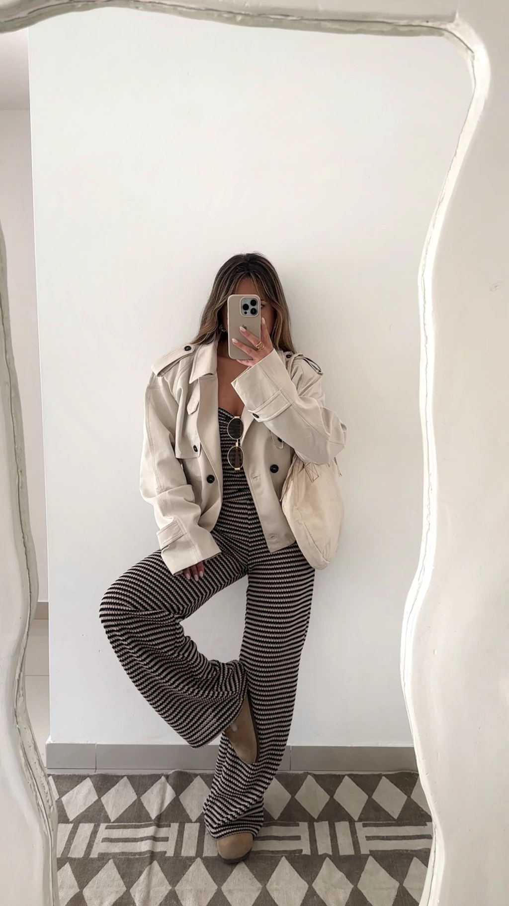 pantalón ancho tejido rayado color beige y negro, con elástico en la cintura <3