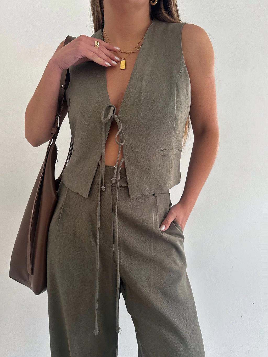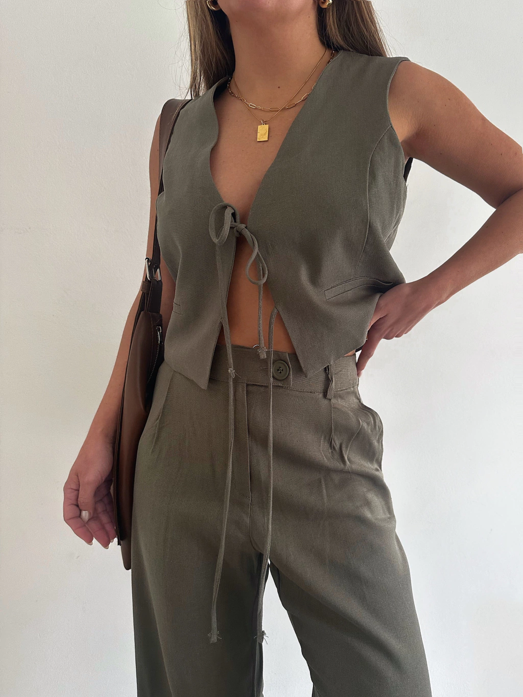 Pantalon de lino, con bolsillos, botón y cierre. Hace set el chaleco doll 🩷 Te dejamos las medidas aproximadas acá abajo, tené en cuenta que las medidas son APROXIMADAS y que fueron tomadas con la prenda apoyada. Lo ideal es que, para comparar las medidas; tomes alguna prenda similar, y las tomes en alguna superficie plana: