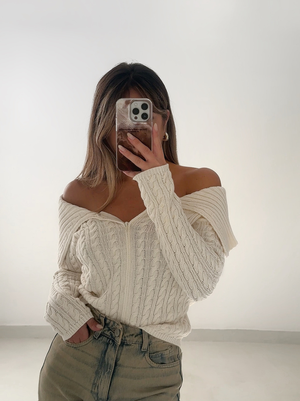 cardigan tipo saquito, entallado, con cierre y cuello alto ♥ es para un talle S/M