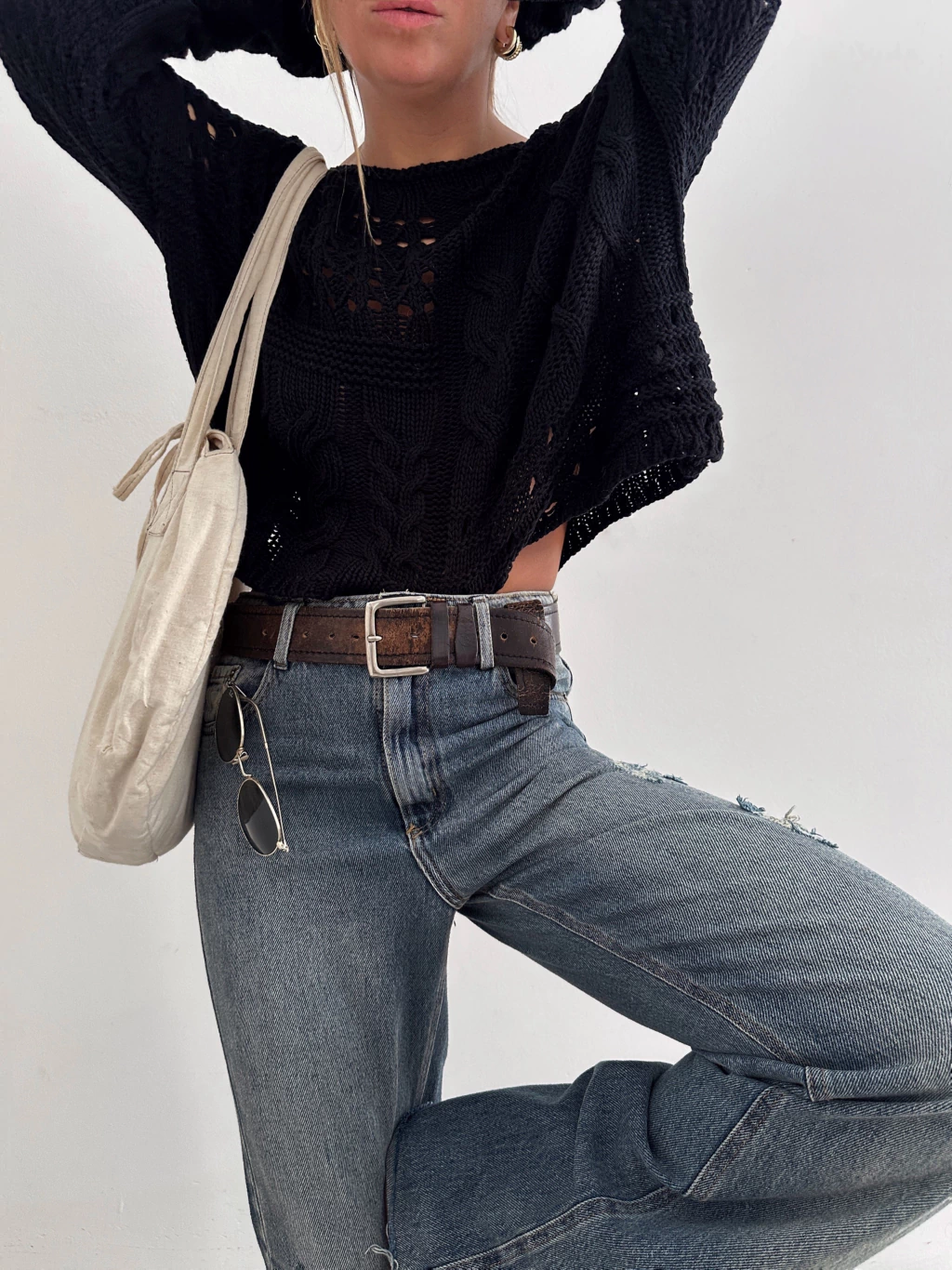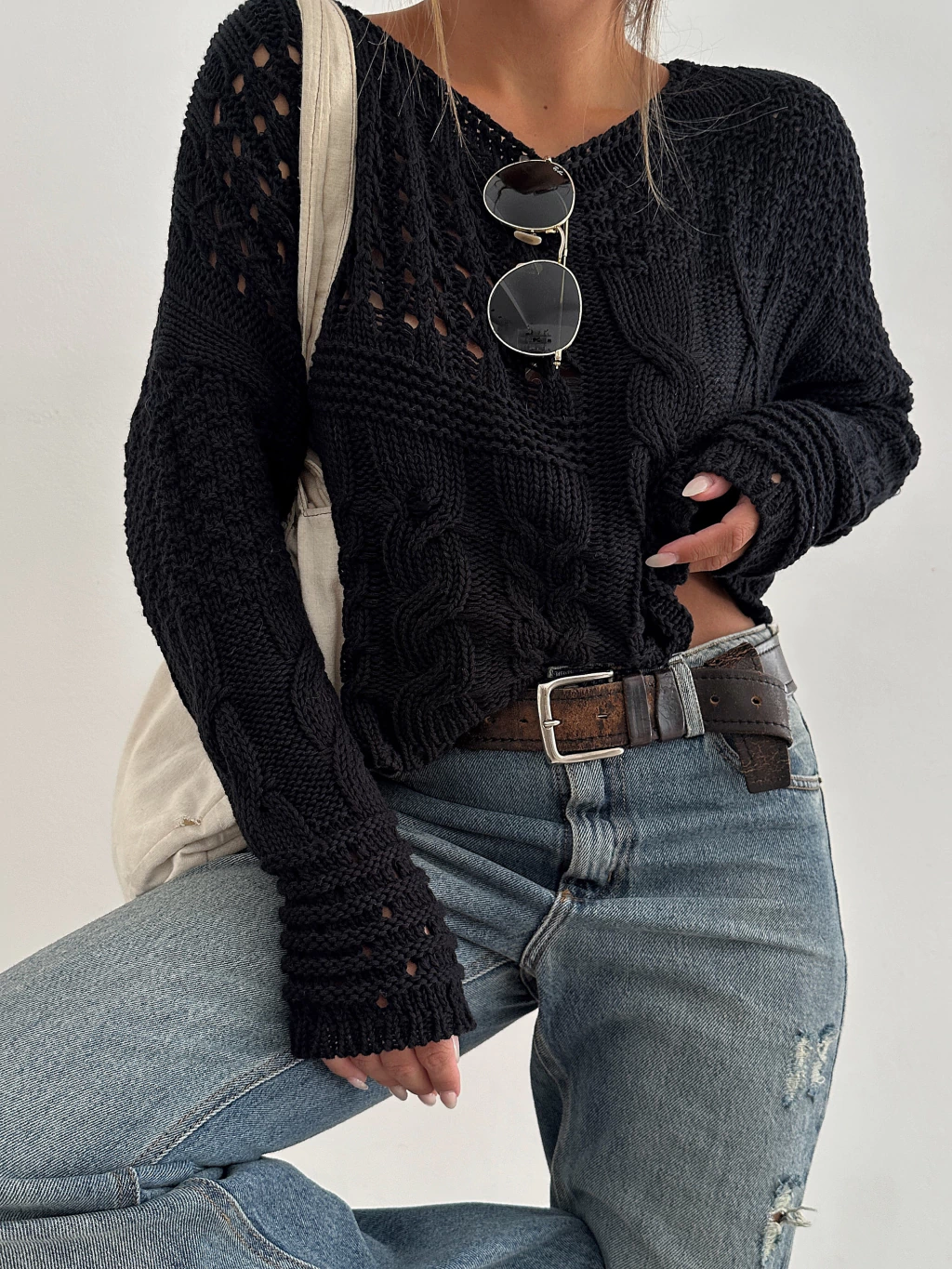sweater tejido corto (a la cintura) de algodón, calado, herrrrmoso. Ideal para media estación 🤎🍂