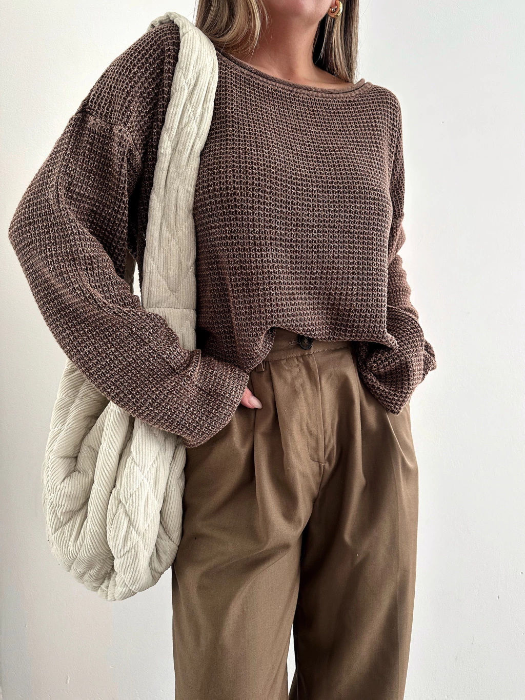 Sweater calado de algodón, con linda caída, con lavado acid wash tipo gastado y oversize 🩷