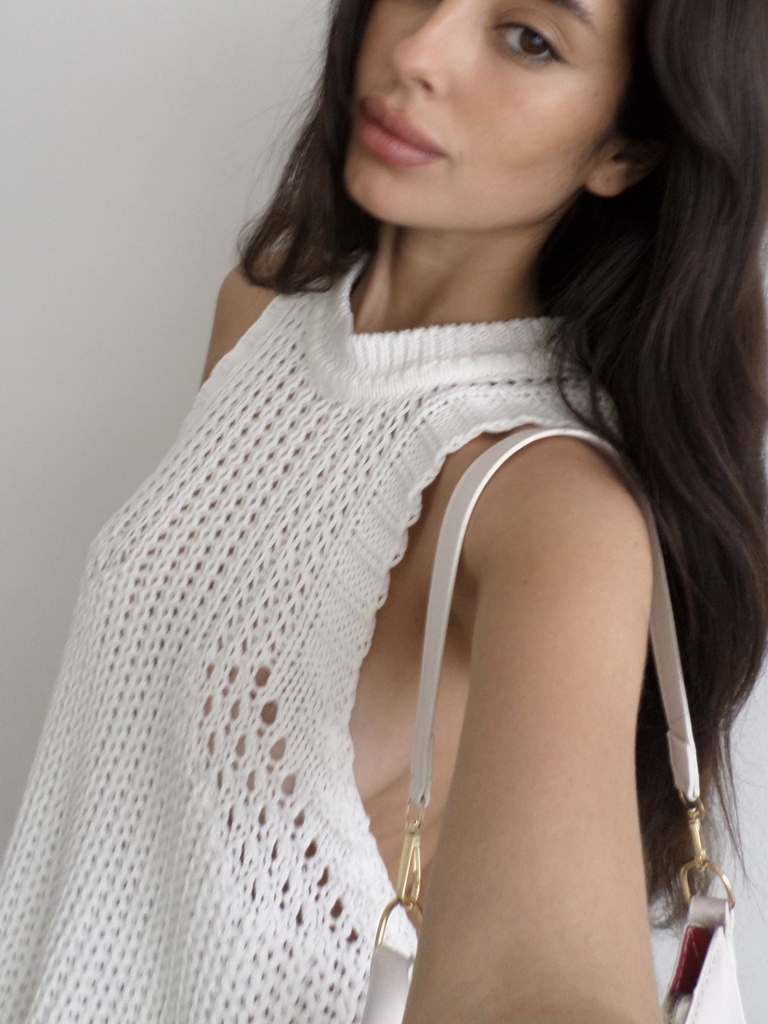 musculosa tipo top con cuello halter, tejido tipo chaleco con tiras laterales para atar. No vas a entender ni la calidad ni lo lindo que queda hasta que no lo tengas con vos ♥